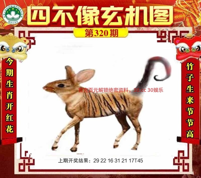 | 320期五肖 | 牛虎羊猴狗 | 开:虎28 |